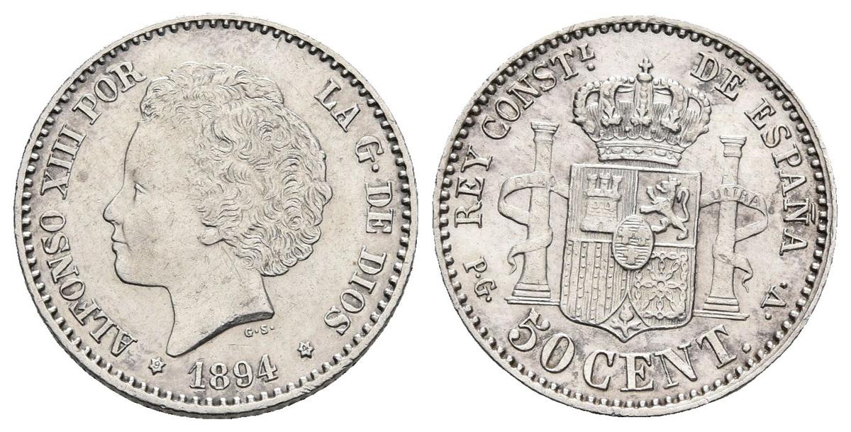 ALFONSO XIII. 50 Céntimos. 1894 *9-4. Madrid PGV. Cal-58. Ar. 2,49g. Rayita en anverso. MBC+/EBC.