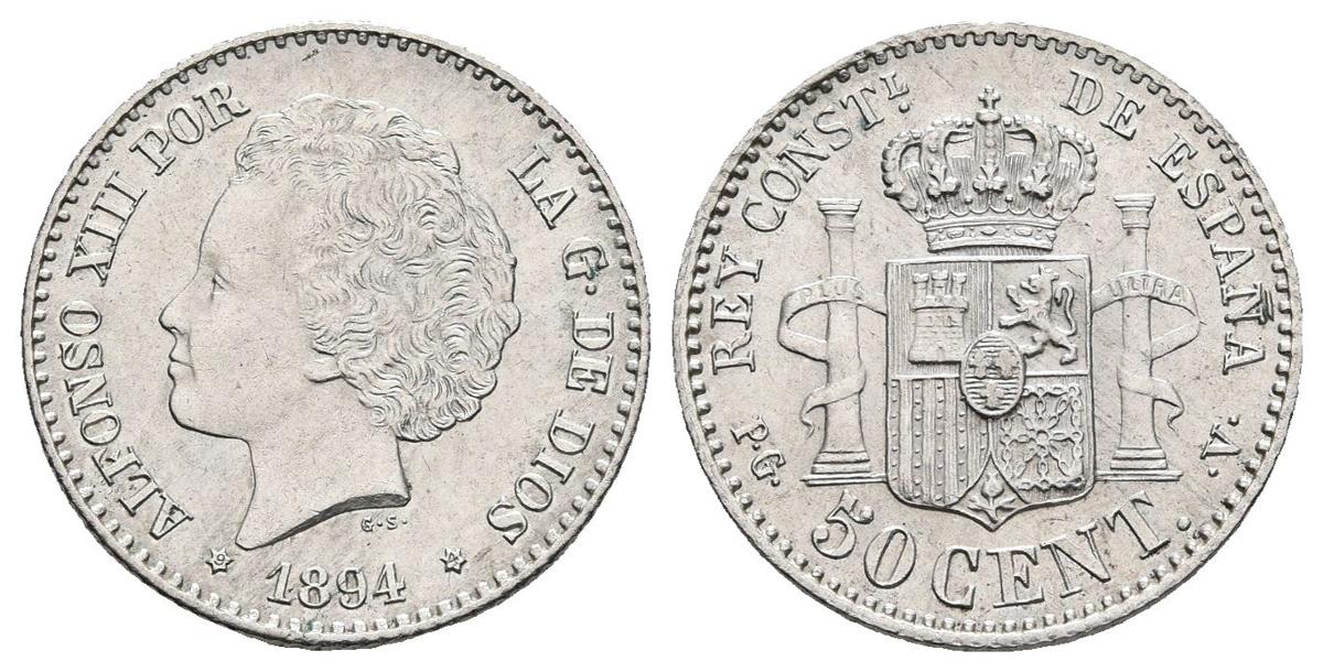 ALFONSO XIII. 50 Céntimos. 1894 *9-4. Madrid PGV. Cal-58. Ar. 2,50g. Brillo original. EBC.