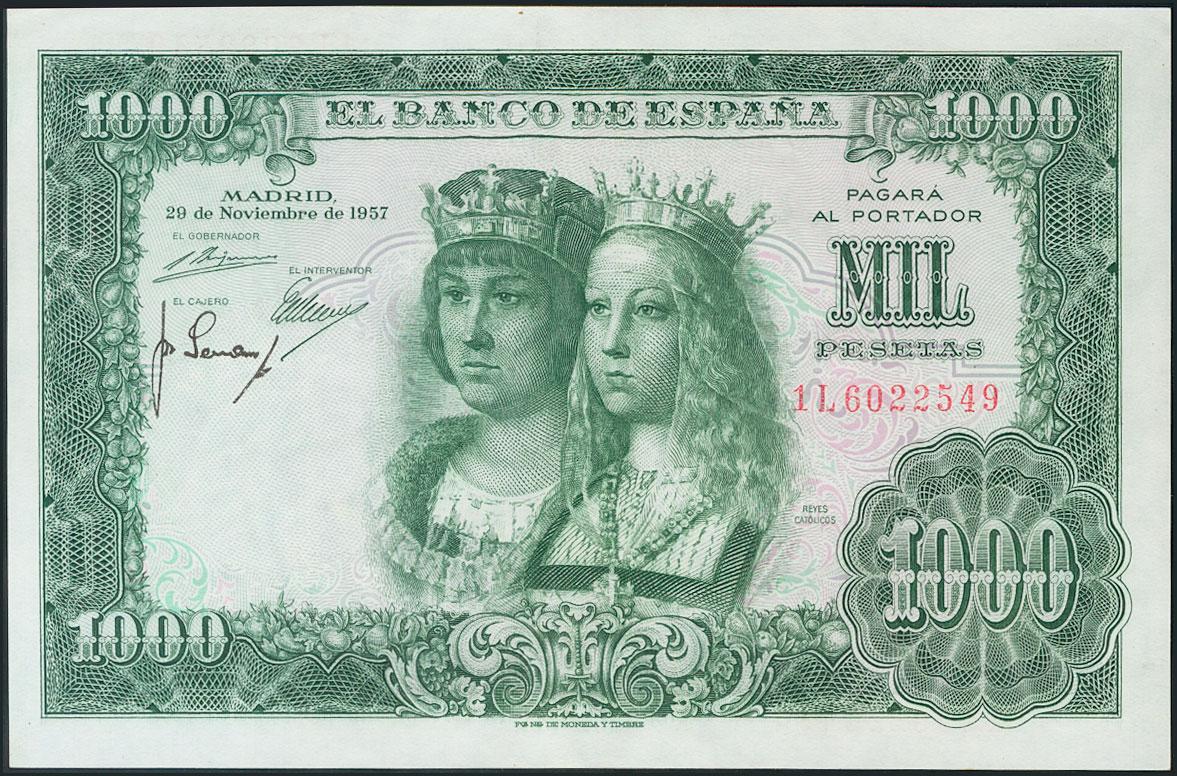 1000 Pesetas. 29 de Noviembre de 1957. Serie 1L. (Edifil 2017: 469b). SC-.