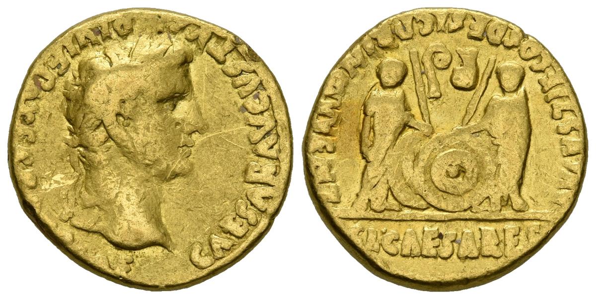 English AUGUST. Golden. (Au. G / mm). 27 BC-AD 14 Lugdunum. (RIC 206). VG. Limited.