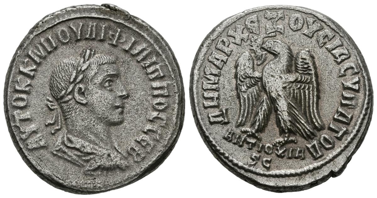 English PHILIPPO I. Tetradrachm. (Ar. 12.32g / 26mm). 244-249 AD Antioch. (Prieur 445; McAlee 934). VF.