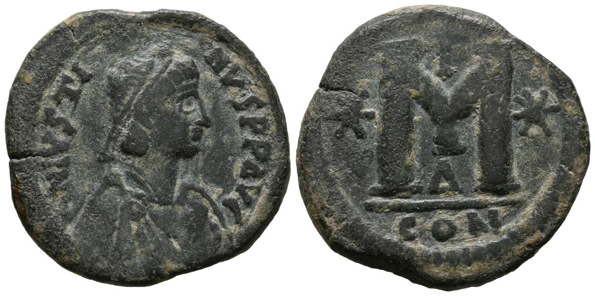 JUSTINIANO I. Follis. (Ae. 13.69g / 29mm). 527-539 AD Constantinople. (Sear 160). VG.
