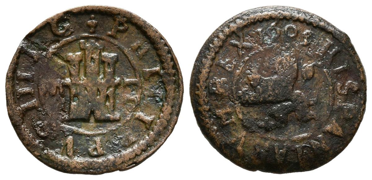 English FELIPE III (1598-1621). 2 Maravedís (Ae. 1,45g / 16mm). 1605. Segovia. (Cal-2019-187). Horizontal aqueduct. BC +. Limited.