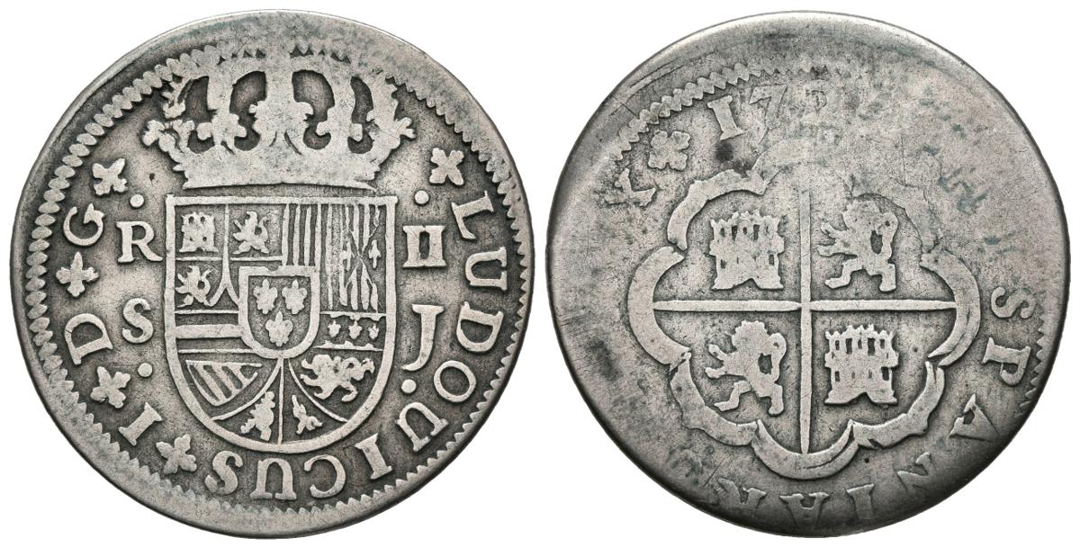 English LUIS I (1724). 2 Real. (Ar. 4.78g / 27mm). 1724. Sevilla J. (Cal-2019-29). BC + / G. Limited.