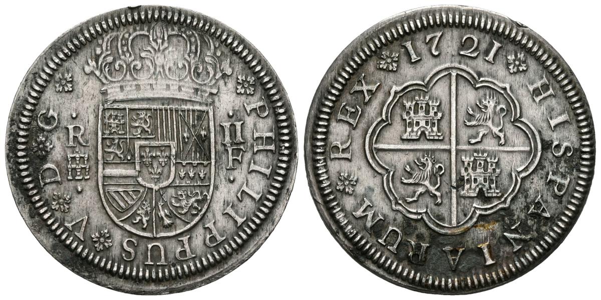 FELIPE V (1700-1746). 2 Real. (Ar. 5.96g / 29mm). 1721. Segovia F. (Cal-2019-954). XF.