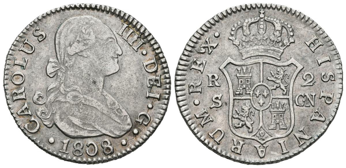 CHARLES IV (1788-1808). 2 Real. (Ar. 5.88g / 27mm). 1808. Seville CN. (Cal-2019-728). VF.