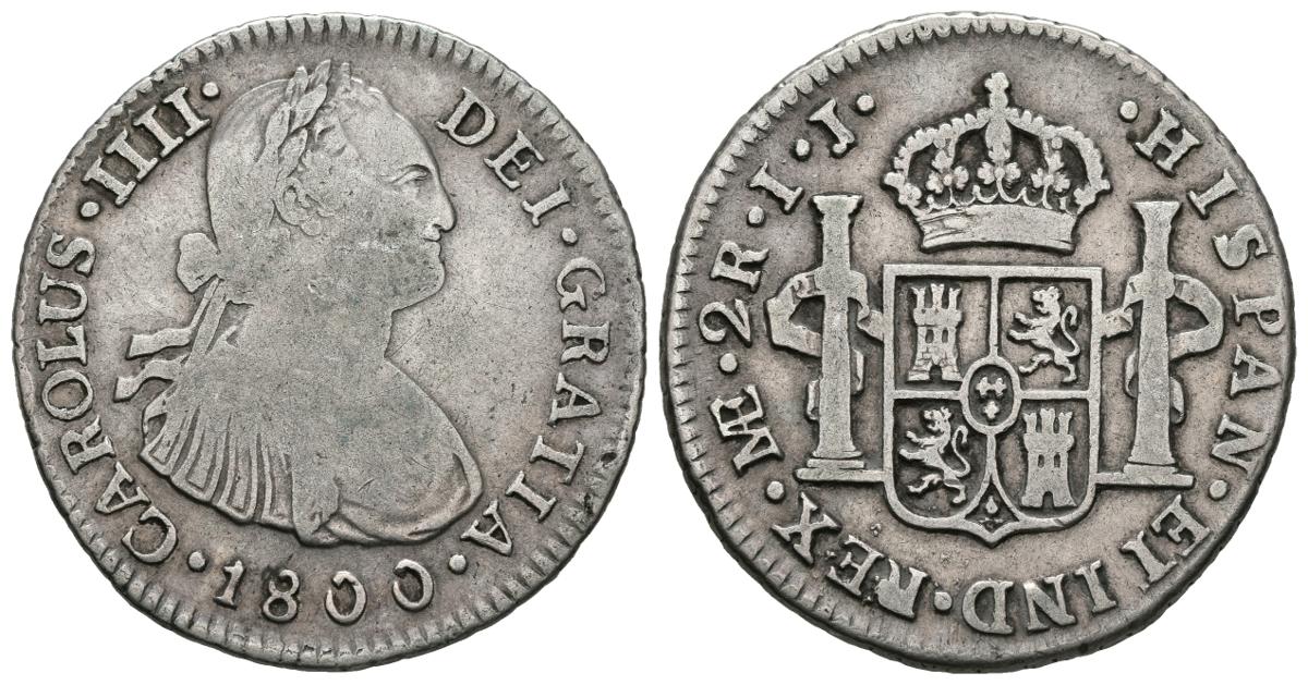 CHARLES IV (1788-1808). 2 Real. (Ar. 6.84g / 27mm). 1800. Lima IJ. (Cal-2019-583). F.