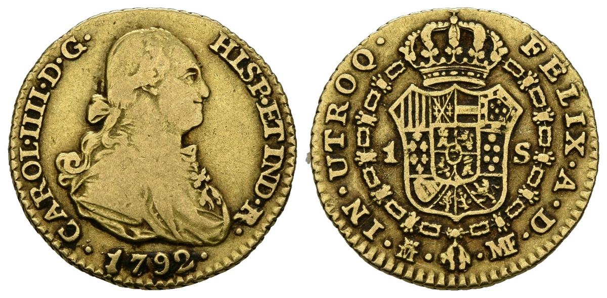 CHARLES IV (1788-1808). 1 Shield. (Au. 3.41g / 18mm). 1792. Madrid MF. (Cal-2019-1109). BC +.