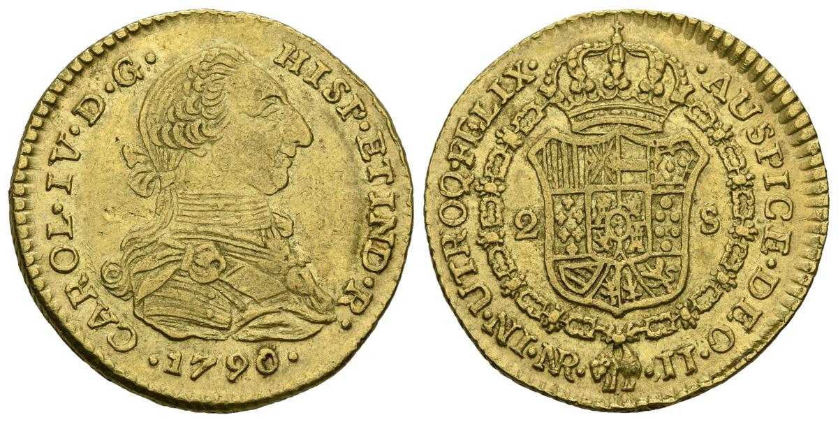 CHARLES IV (1788-1808). 2 Shields. (Au 6.73g / 23mm). 1790/89. Madrid JJ. (Cal-2019-1381). VF.