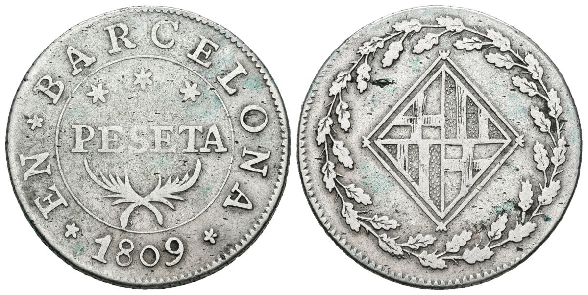 English JOSE NAPOLEON (1808-1814). 1 peseta. (Ar. 5.50g / 26mm). 1809. Barcelona. (Cal-2019-32). VG. Limited.