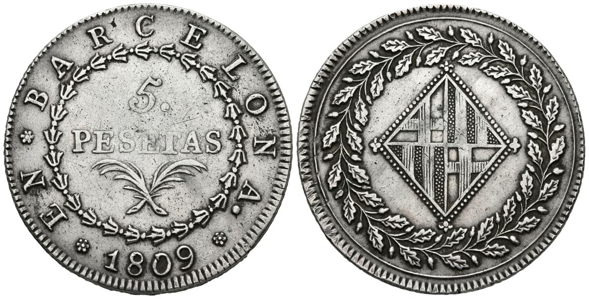 JOSE NAPOLEON (1808-1814). 5 Pesetas. (Ar. 26.86g / 39mm). 1809. Barcelona. (Cal-2019-45). VF. Limited.