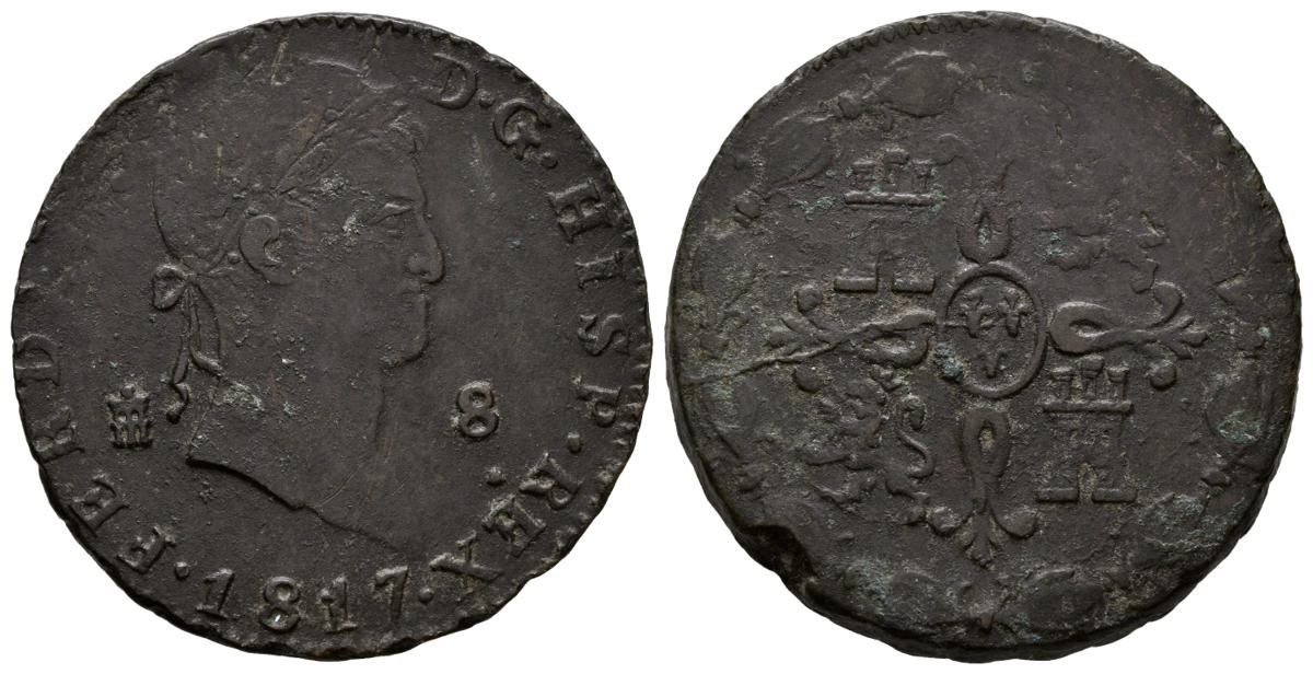 English FERNANDO VII (1808-1833). 8 Maravedís (Ae. 11.50g / 29mm). 1817. Segovia. (Cal-2019-214). VG.