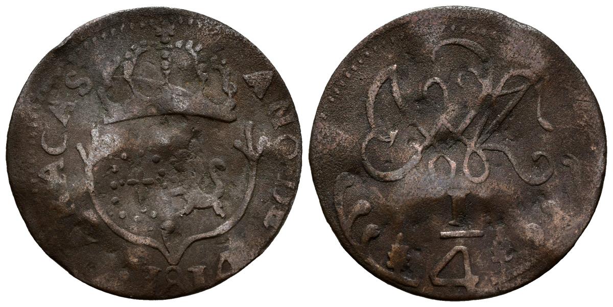 FERNANDO VII (1808-1833). 1/4 Real. (Cu. 2.23g / 25mm). 1814. Caracas. (Cal-2019-63). G. Warped.
