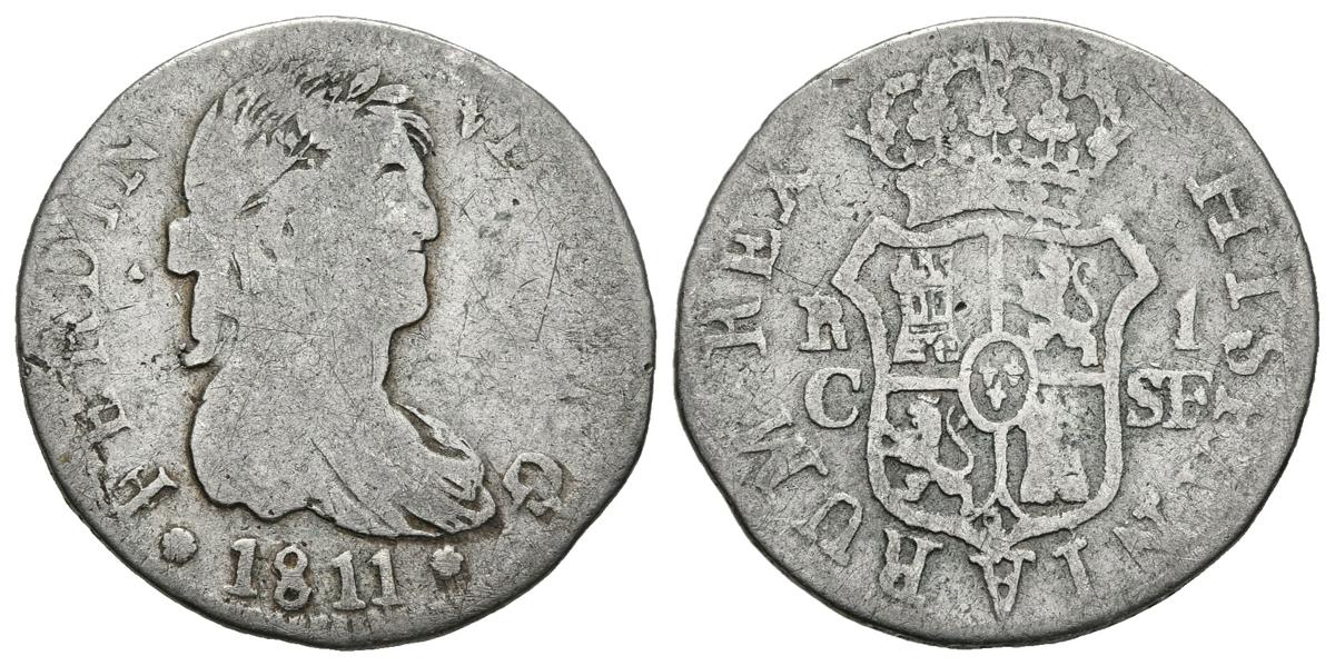 English FERNANDO VII (1808-1833). 1 Real. (Ar. 2.47g / 20mm). 1811. Catalonia SF. (Cal-2019-511). BC +. Scarce.