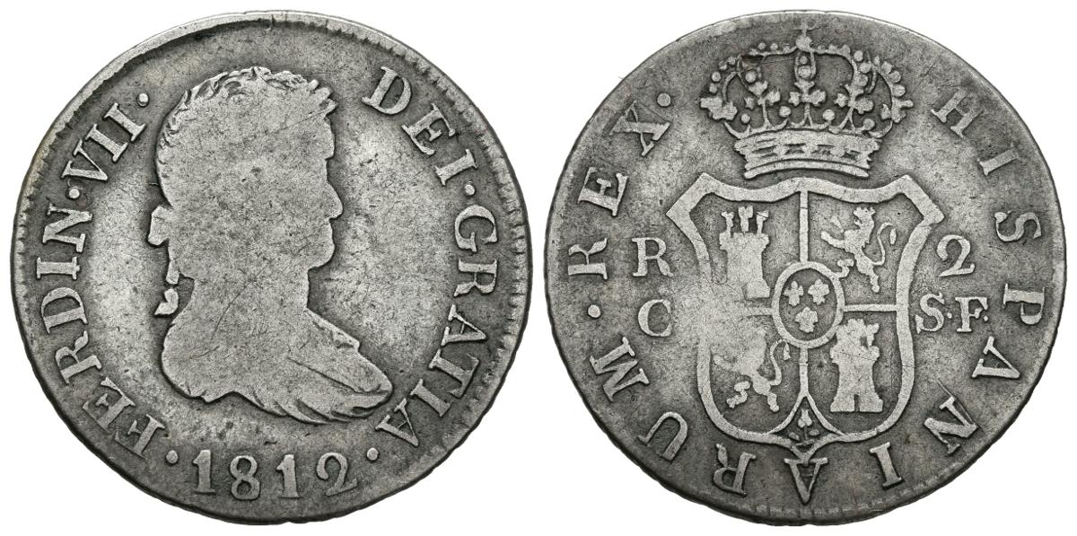 FERNANDO VII (1808-1833). 2 Real. (Ar. 5.31g / 26mm). 1812. Catalonia SF. (Cal-2019-766). BC +. Limited.