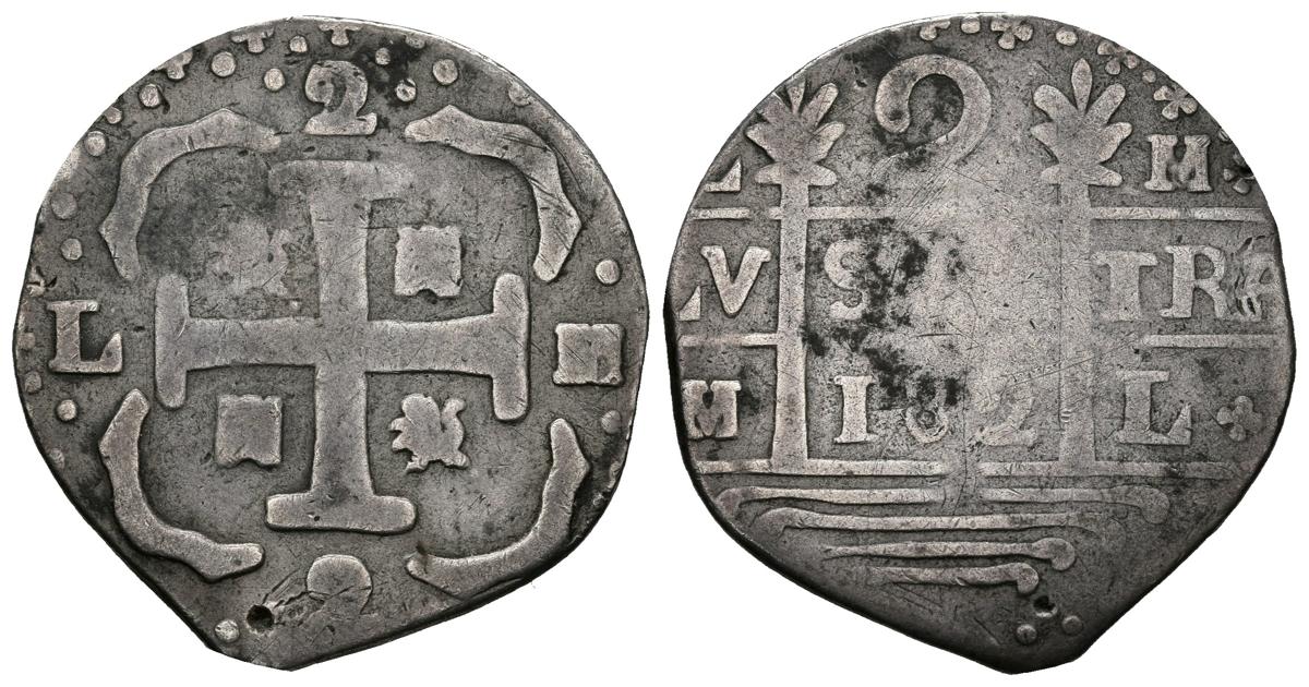 English FERNANDO VII (1808-1833). 2 Real. (Ar. 4.00g / 24mm). 182. Caracas. (Cal-2019-745). VG. Drilling attempt. Rare.