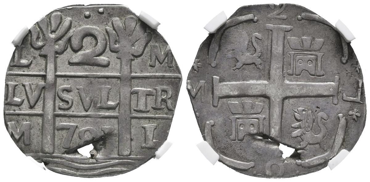 FERNANDO VII (1808-1833). 2 Real. (Ar. 5.00g / 24mm). 781 (early 19th century). Caracas. (Cal-752). Encapsulated NGC UNC Details. Coinage defects. Limited.