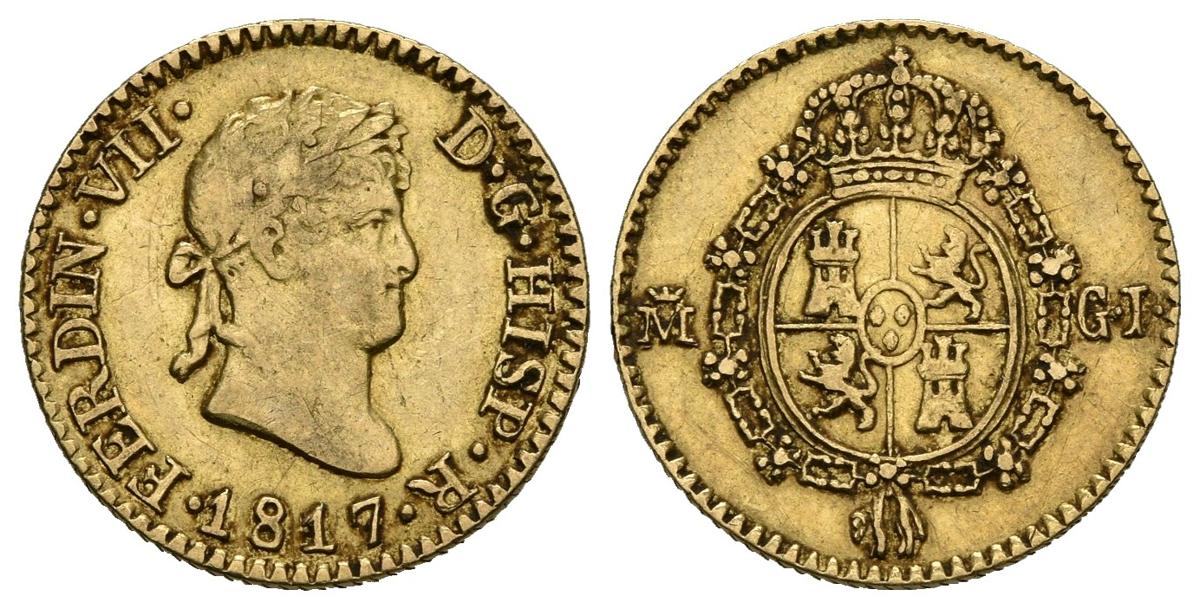 FERNANDO VII (1808-1833). 1/2 Shield. (Au. 1.70g / 14mm). 1817. Madrid GJ. (Cal-2019-1486). VG.
