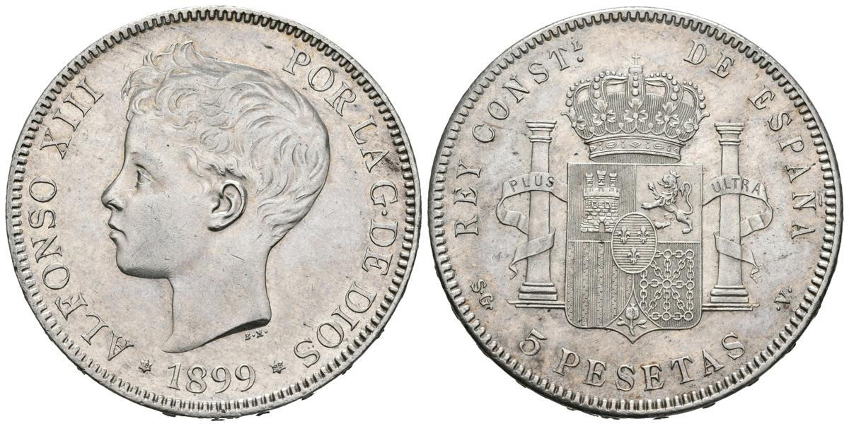 English ALFONSO XIII (1885-1931). 5 Pesetas. (Ar. 24.87g / 37mm). 1898 * 18-98. Madrid SGV. (Cal-2019-110). AU.