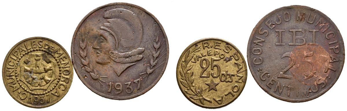 Set of 2 coins of 25 cents of the II Spanish Republic minted in Ibi (Alicante) and Menorca. Different states of conservation. TO EXAMINE.
