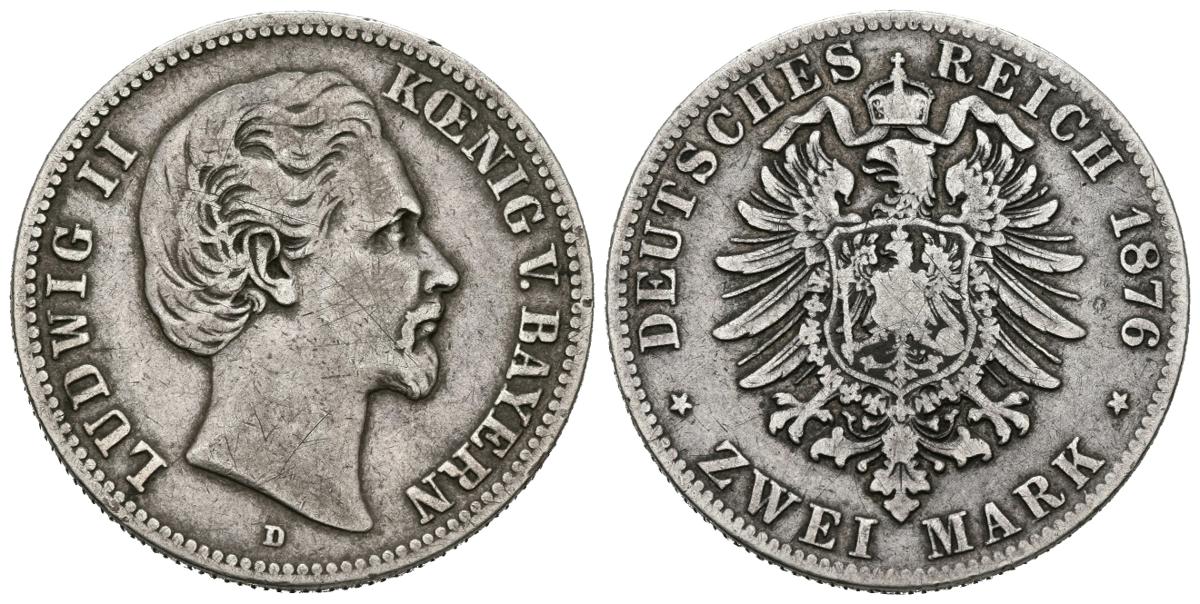 GERMANY. 2 Mark. (Ar. 10.86g / 28mm). 1876. Munich D. (Km # 903). VG.
