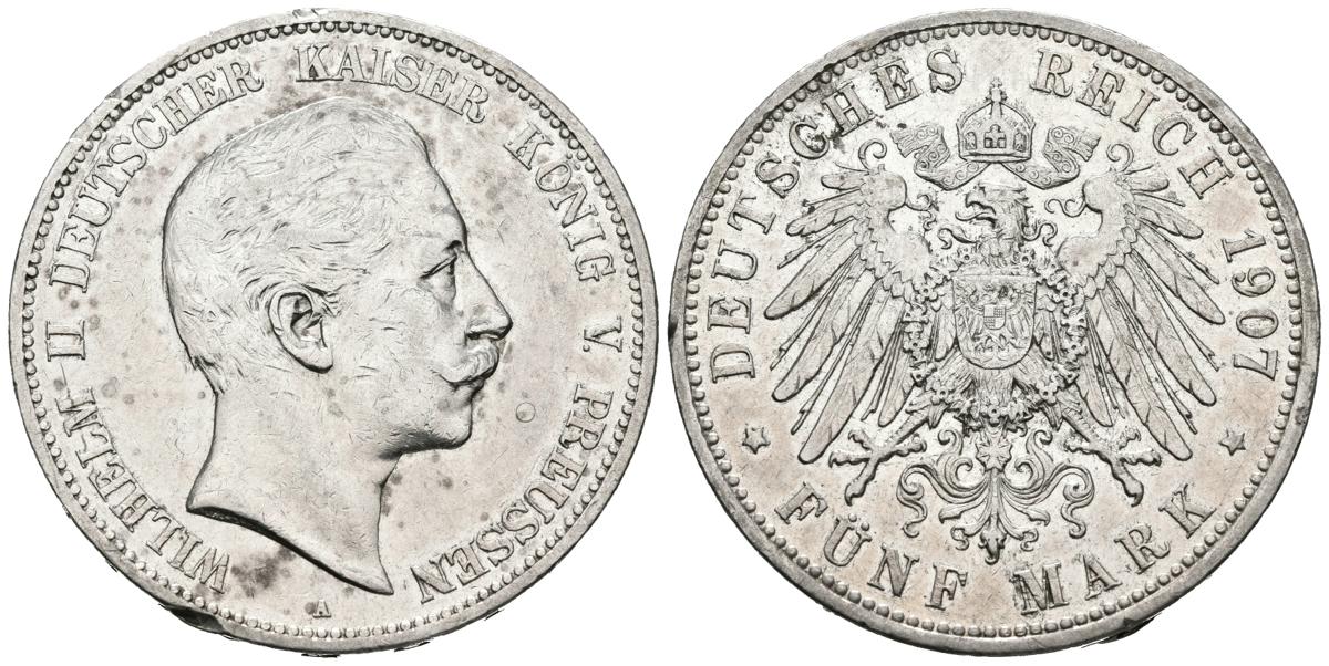 GERMANY. 5 Mark (Ar. 27.71g / 38mm). 1907. (Km # 523). VF. Bumps on the edge and scratch.