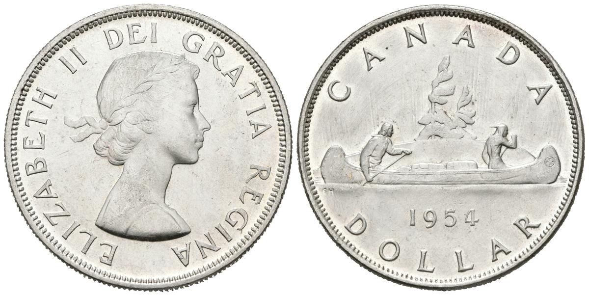 CANADA. 1 USD. (Ar. 23.35g / 36mm). 1954. (Km # 54). VF.