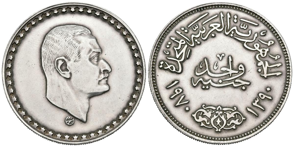 English EGYPT. 1 pound. (Ar. 25.18g / 40mm). 1970. (Km # 425). AU.