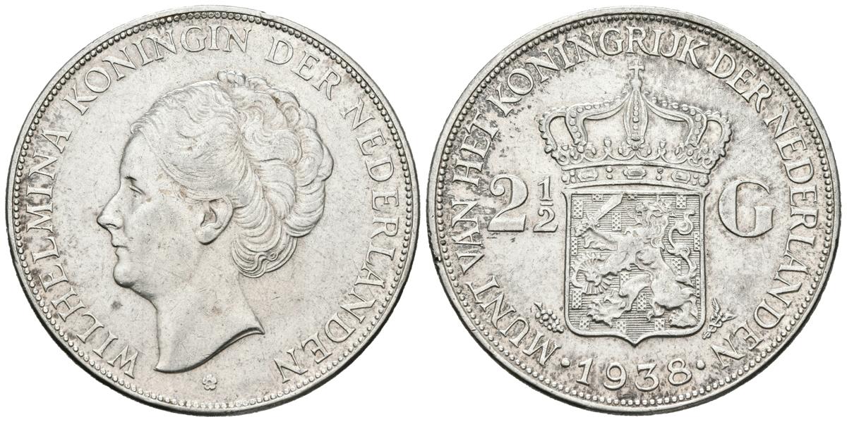 HOLLAND. 2 1/2 Gulden. (Ar. 25.00g / 38mm). 1938. (Km # 165). AU.
