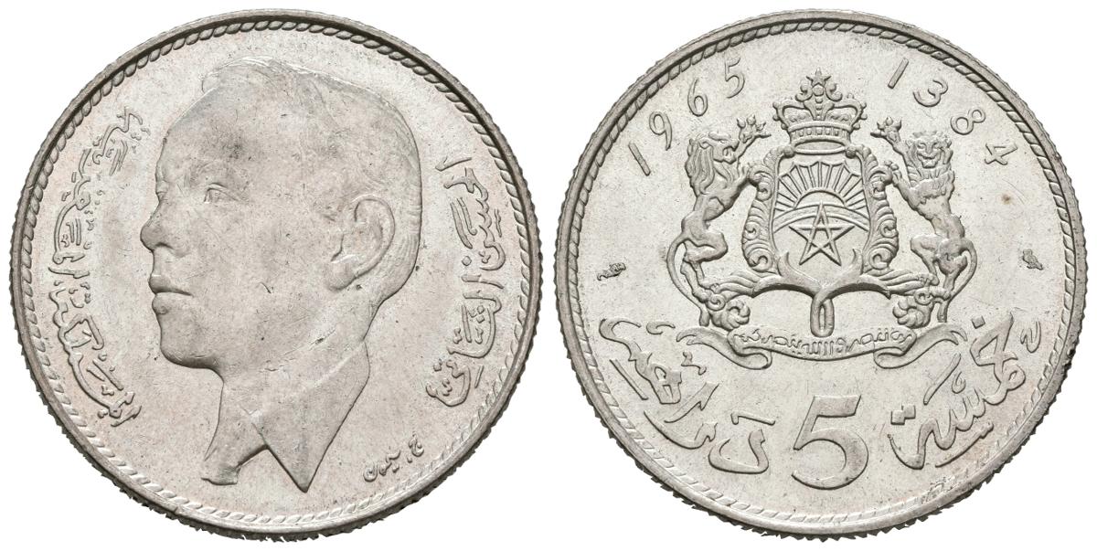 MOROCCO. 5 Dirhams. (Ar. 11.77g / 29mm). 1965. (AH-1384). VF.