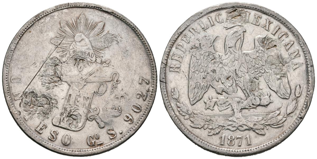 MEXICO. 1 Weight. (Ar. 27.00g / 38mm). 1871. Guanajuato. (Km # 408.4). VG.