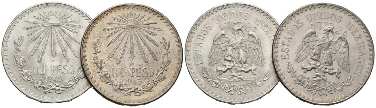English MEXICO. Set of 2 1 Peso silver coins from the years 1940 and 1943. Different states of conservation. TO EXAMINE.
