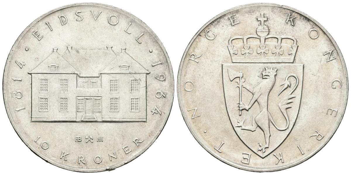 NORWAY. 10 Kroner. (Ar. 19.95g / 35mm). 1964. (Km # 413). AU.