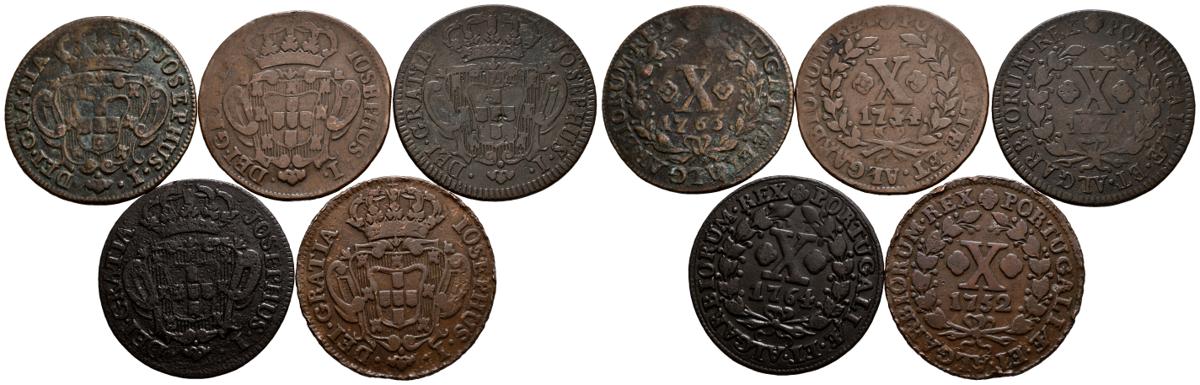 PORTUGAL. Set of 5 coins of X Reis minted under the reign of José I (1750-1777). Different states of conservation. To examine