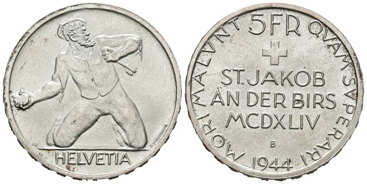 SWITZERLAND. 5 Francs (Ar. 15.01g / 31mm). 1944. Berna B. (KM # 45). XF.