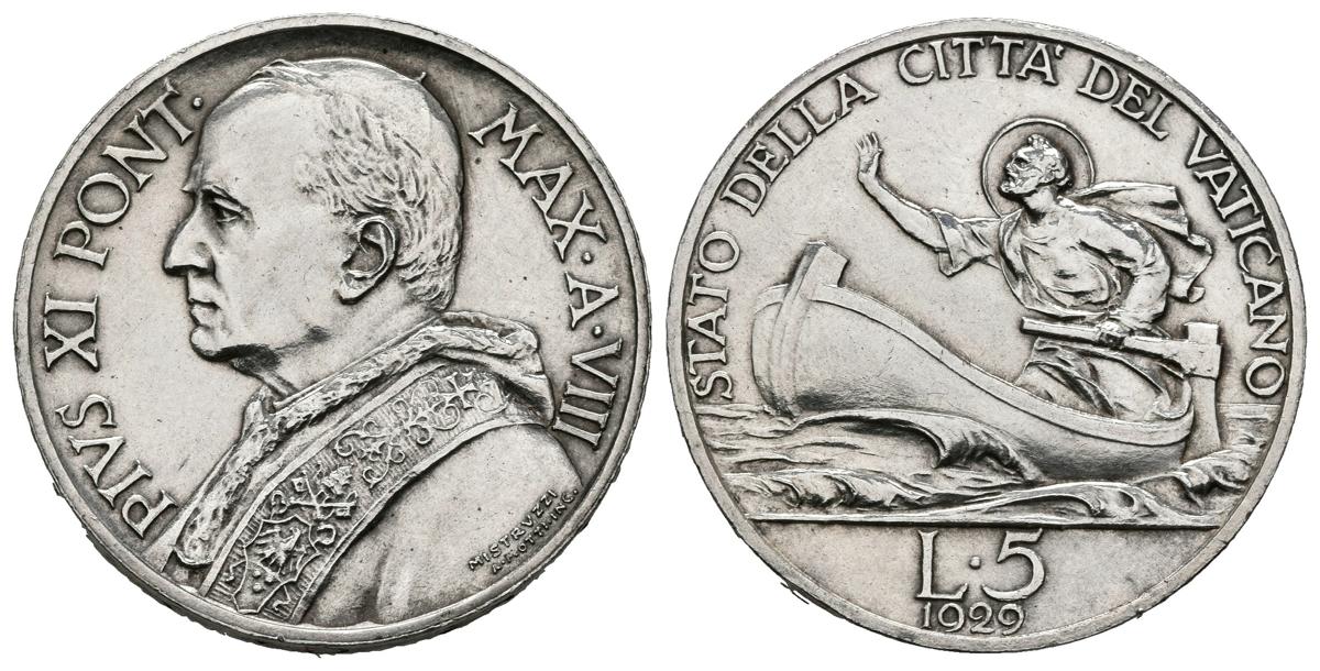 English VATICAN. 5 liras. (Ar. 5.01g / 23mm). 1929. (Km # 7). AU.