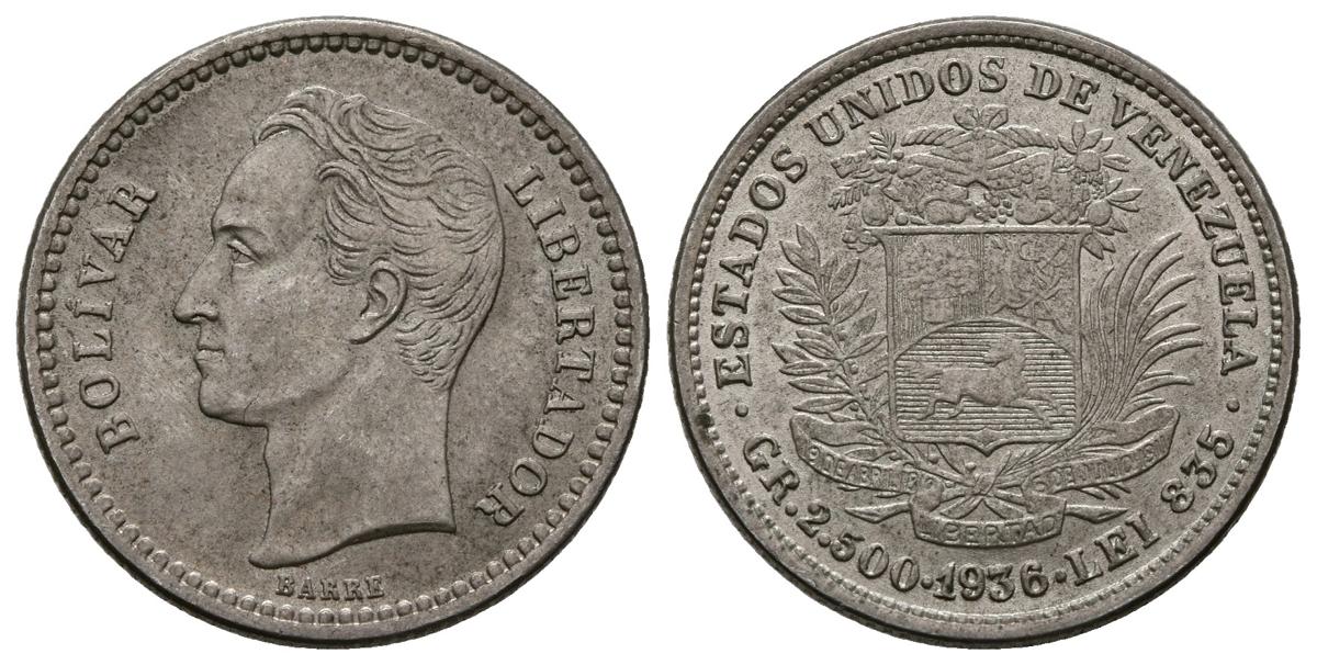 UNITED STATES OF VENEZUELA. 1/2 Bolívar. (Ar. 2.51g / 18mm). 1936. Philadelphia. (Km # Y21). AU.