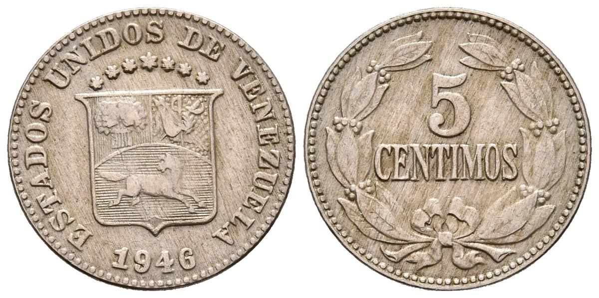 English UNITED STATES OF VENEZUELA. 5 Cents. (CuNi. 2.40g / 19mm). 1946. Philadelphia. (Km # Y29.a). F.