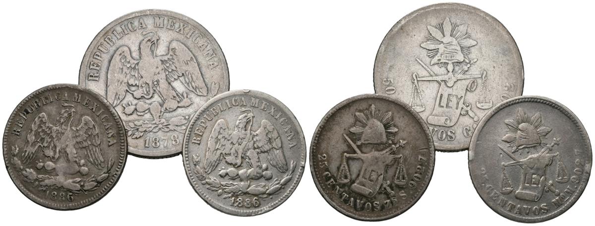 MEXICO. Set of 3 silver coins from the 19th century with values of 20 and 50 cents. Different states of conservation. TO EXAMINE.