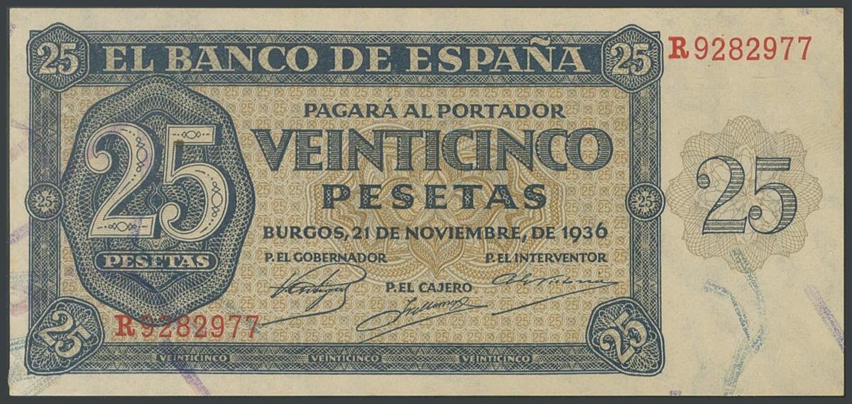 25 Pesetas. November 21, 1936. Series R. (Edifil 2017: 419a). UNC.