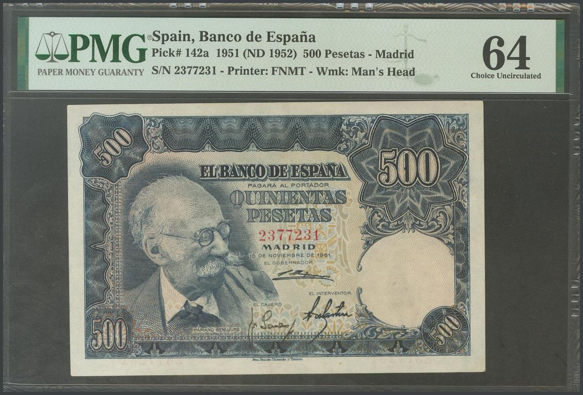 500 pesetas. November 15, 1951. Without series. (Edifil 2017: 460). UNC. PMG64 package.