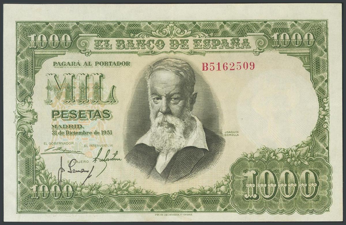 1000 Pesetas. December 31, 1951. Series B. (Edifil 2017: 463a). AU.