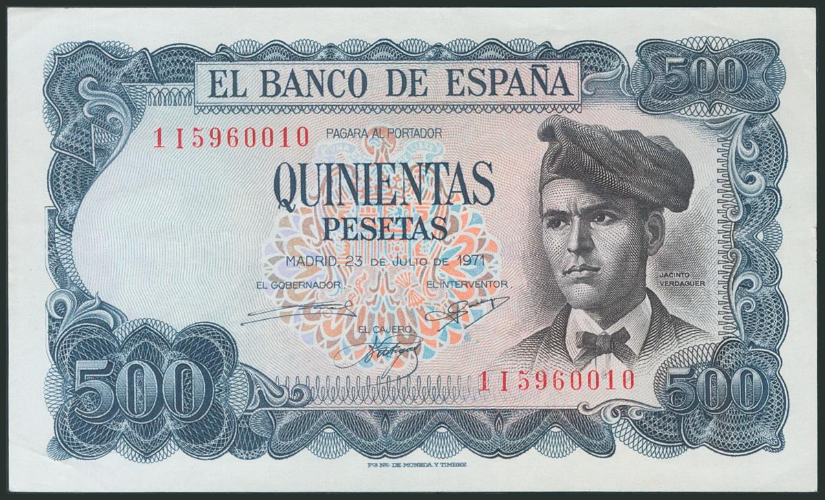 500 pesetas. July 23, 1971. Series 1I. (Edifil 2017: 473a). AU.