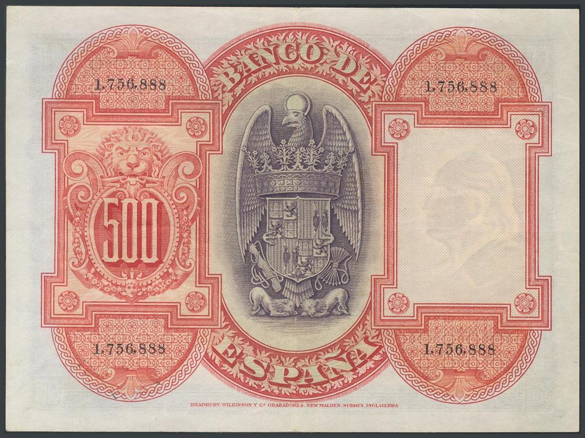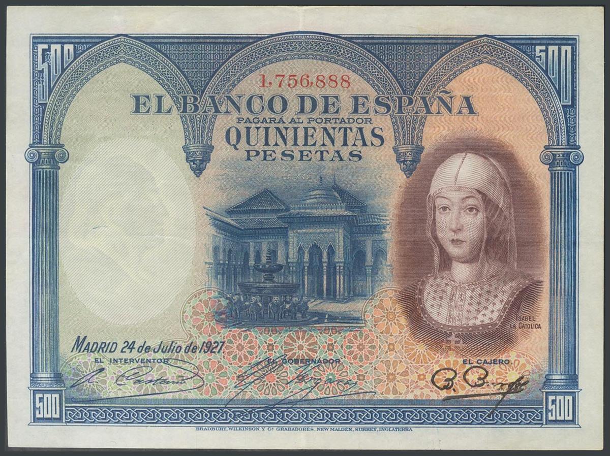 English 500 pesetas. July 24, 1927. (Edifil 2017: 352). Various folds. F.