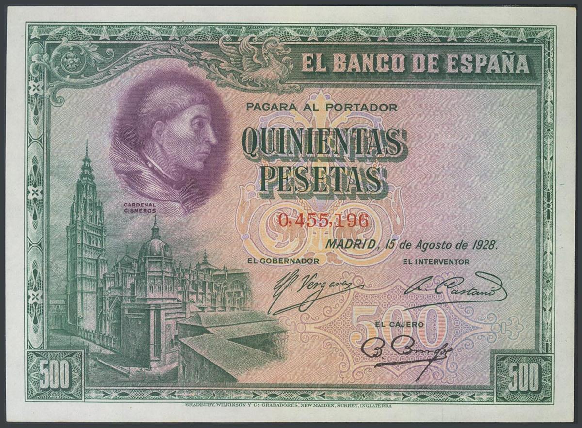 500 pesetas. August 15, 1928. Without series. (Edifil 2017: 356). UNC.