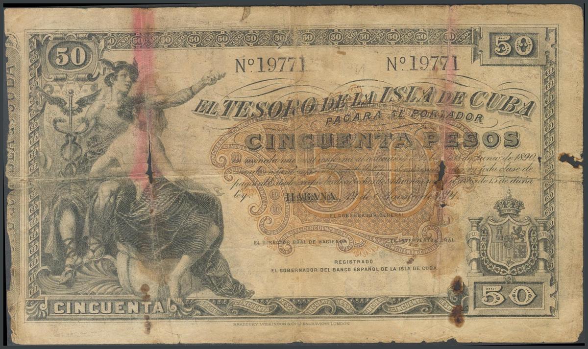 CUBA. 50 pesos. August 12, 1891. (Edifil 2017: 66, Echenagusía: 38). FR2.