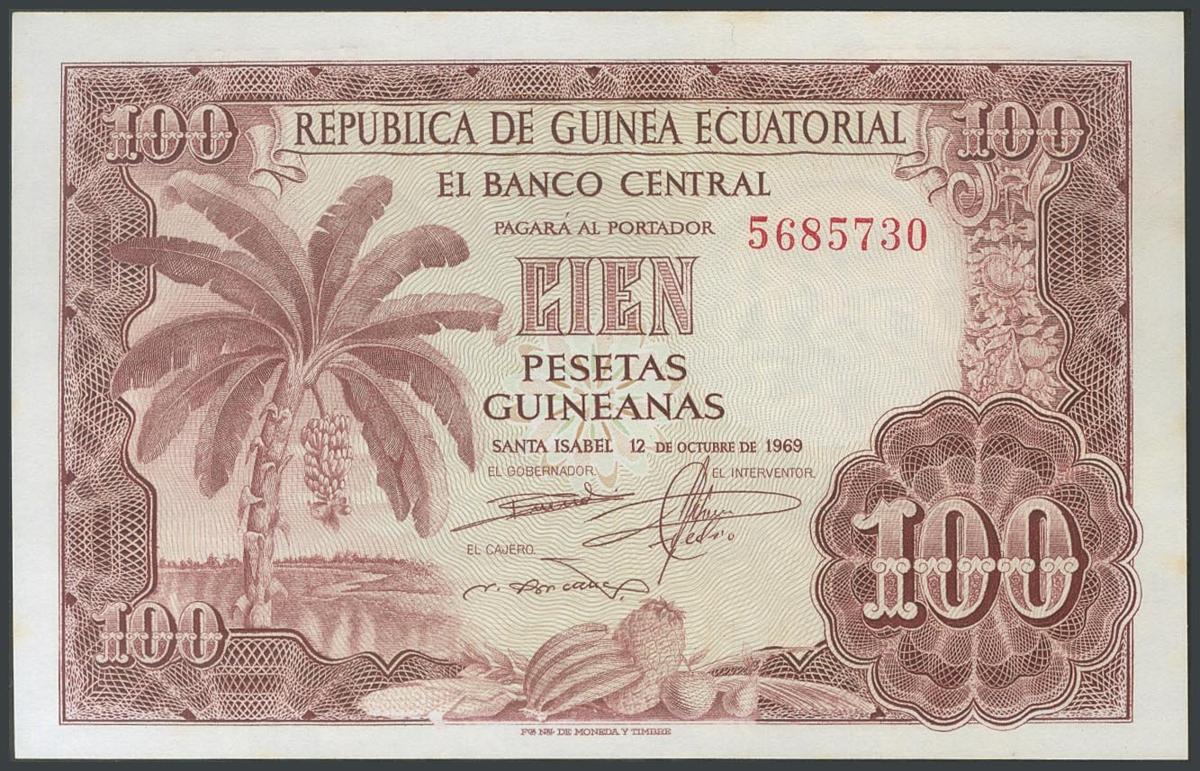 EQUATORIAL GUINEA. 100 Pesetas. October 12, 1969. Without series. (Edifil 2017: 1). Time spots. AU.
