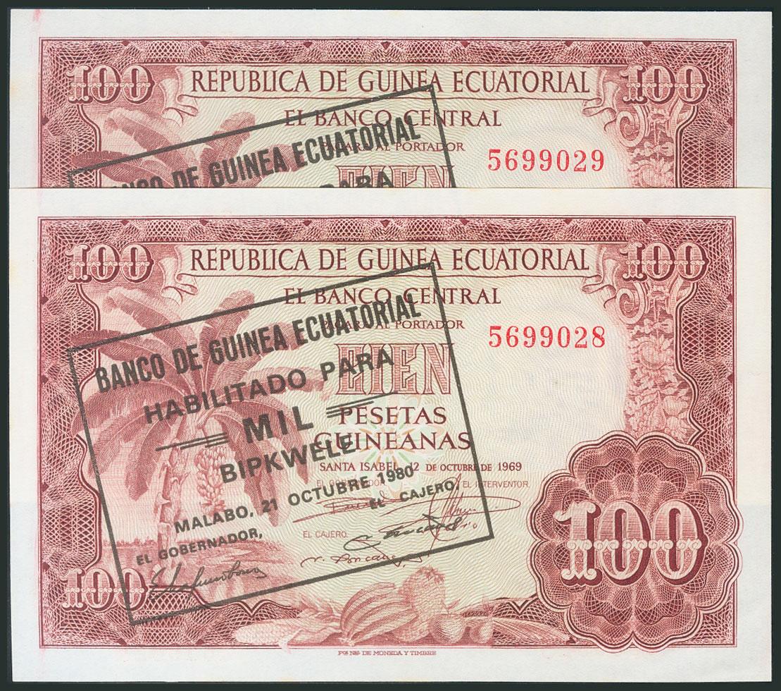 REPUBLICAN GUINEA. 1000 Bipkwele. October 21, 1980. Correlative pair. Without serial and with approval stamp. (Pick: 18). AU.