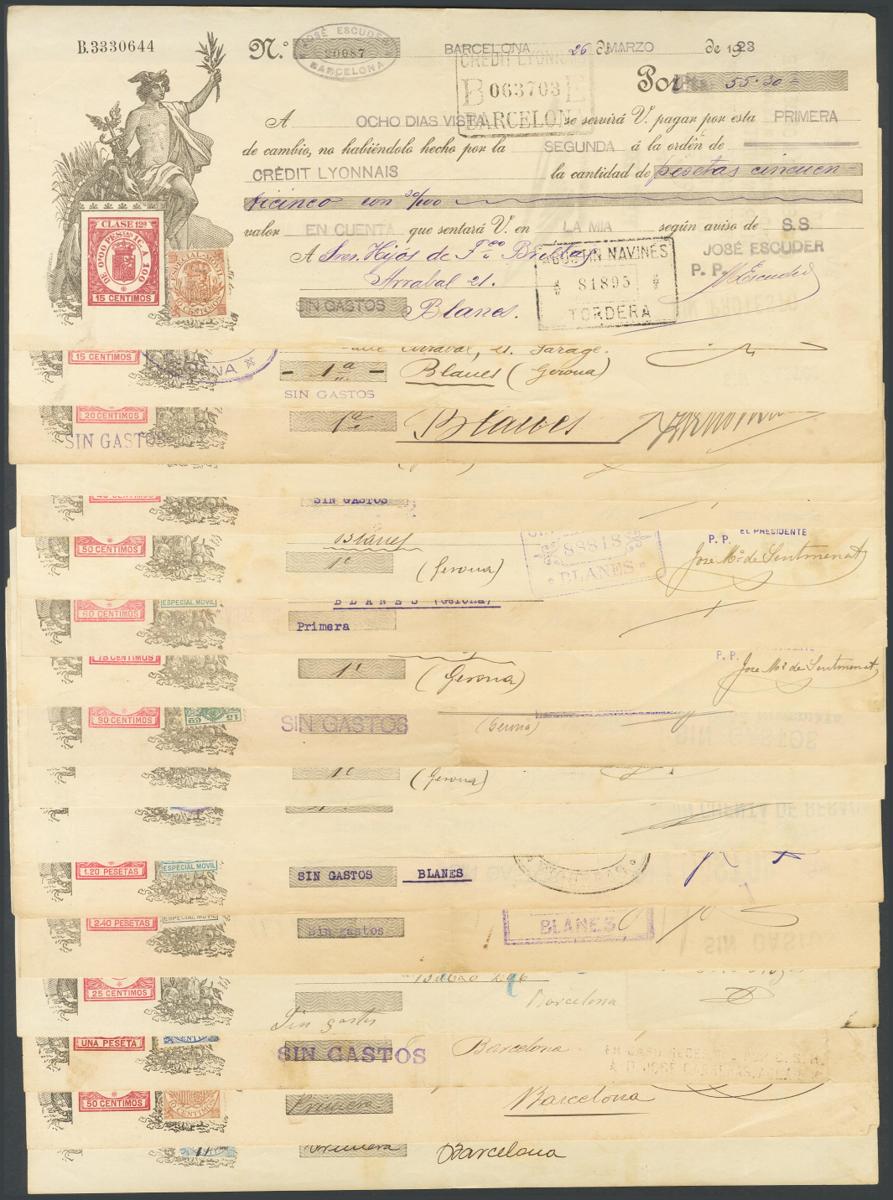 Set of 19 Bills of Exchange stamped with Fiscal Stamps of Bills of various values from 1923, some accompanied by stamps of Mobile Stamps of different values. TO EXAMINE.