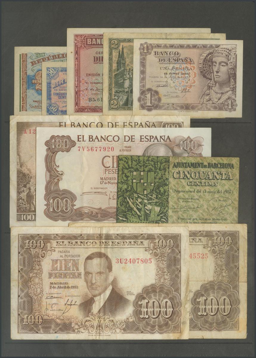 Set of 10 banknotes from the Bank of Spain, except for one from the Barcelona Civil War, in various qualities. TO EXAMINE.